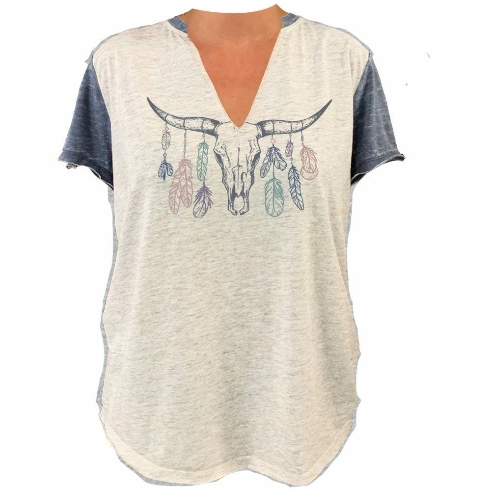Lincoln Outfitters Ladies V-Neck BOHO Antler Short Sleeve Fashion T-Shirt – LO-LF12